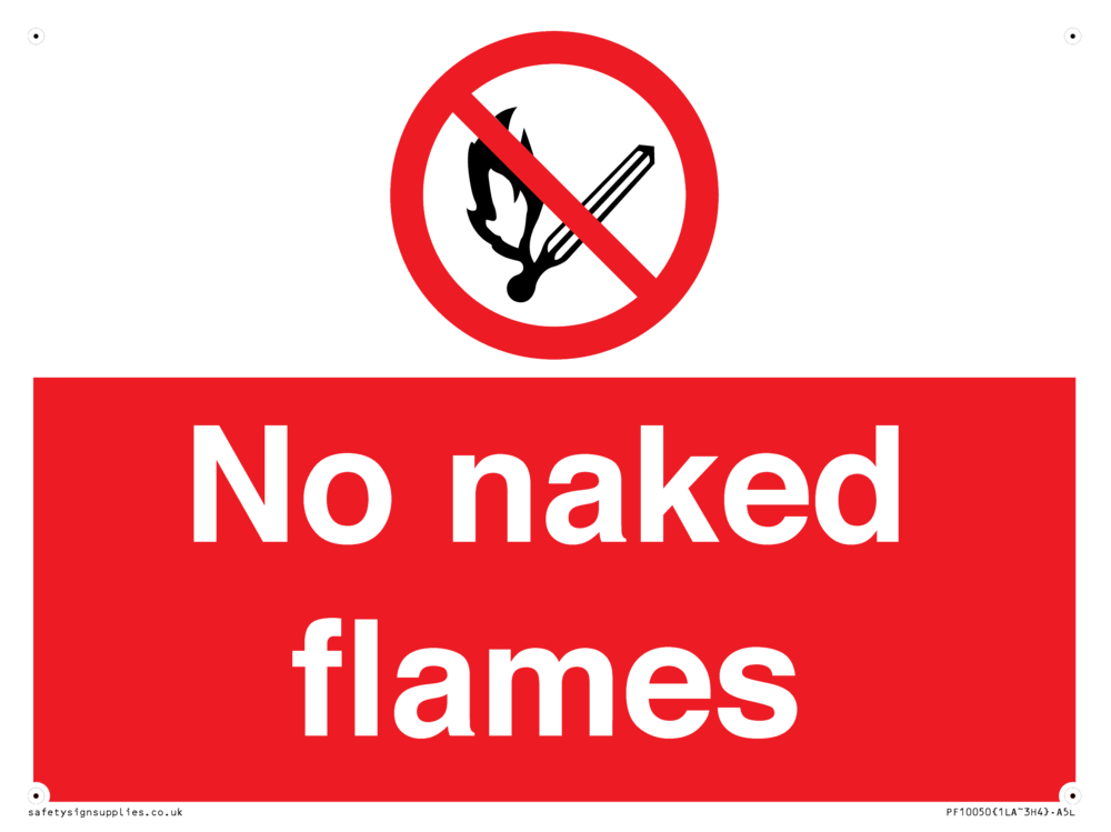 ISO 7010-P003 Prohibition: No open flame; Fire, open ignition source and smoking prohibited