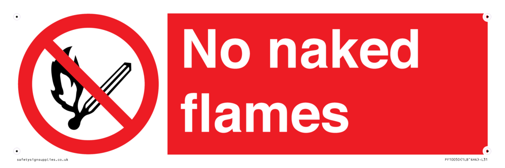 ISO 7010-P003 Prohibition: No open flame; Fire, open ignition source and smoking prohibited