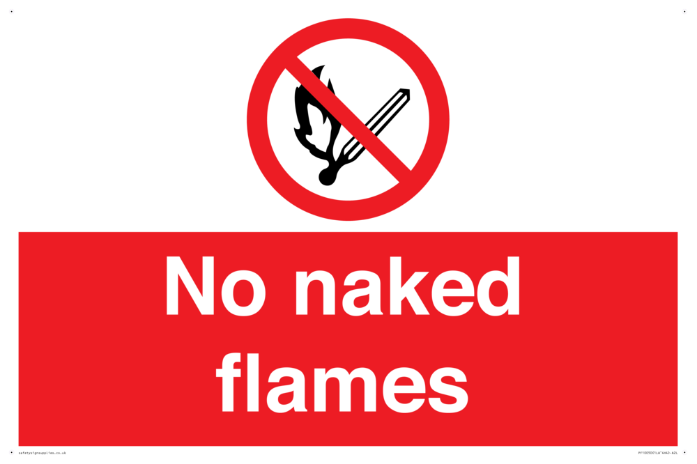 ISO 7010-P003 Prohibition: No open flame; Fire, open ignition source and smoking prohibited