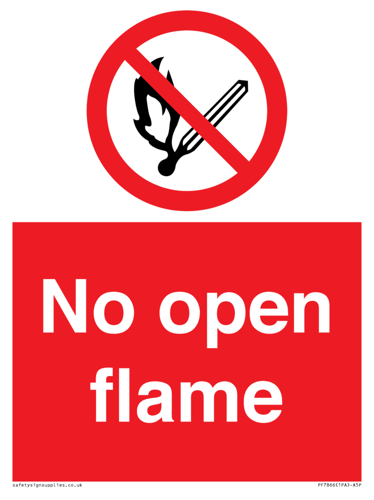 ISO 7010-P003 Prohibition: No open flame; Fire, open ignition source and smoking prohibited