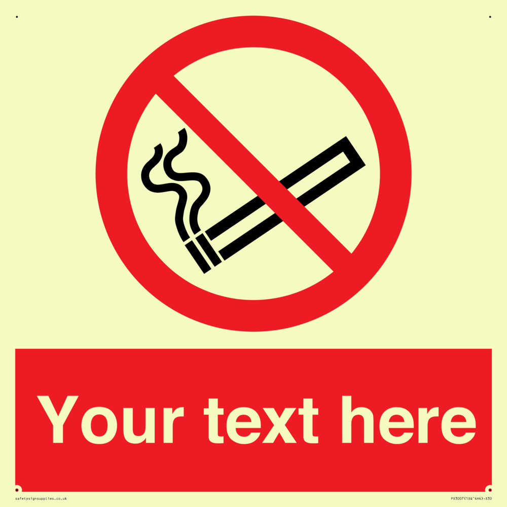 Custom no smoking sign with no smoking symbol symbol - cigarette in circle crossed diagaonally through in red.