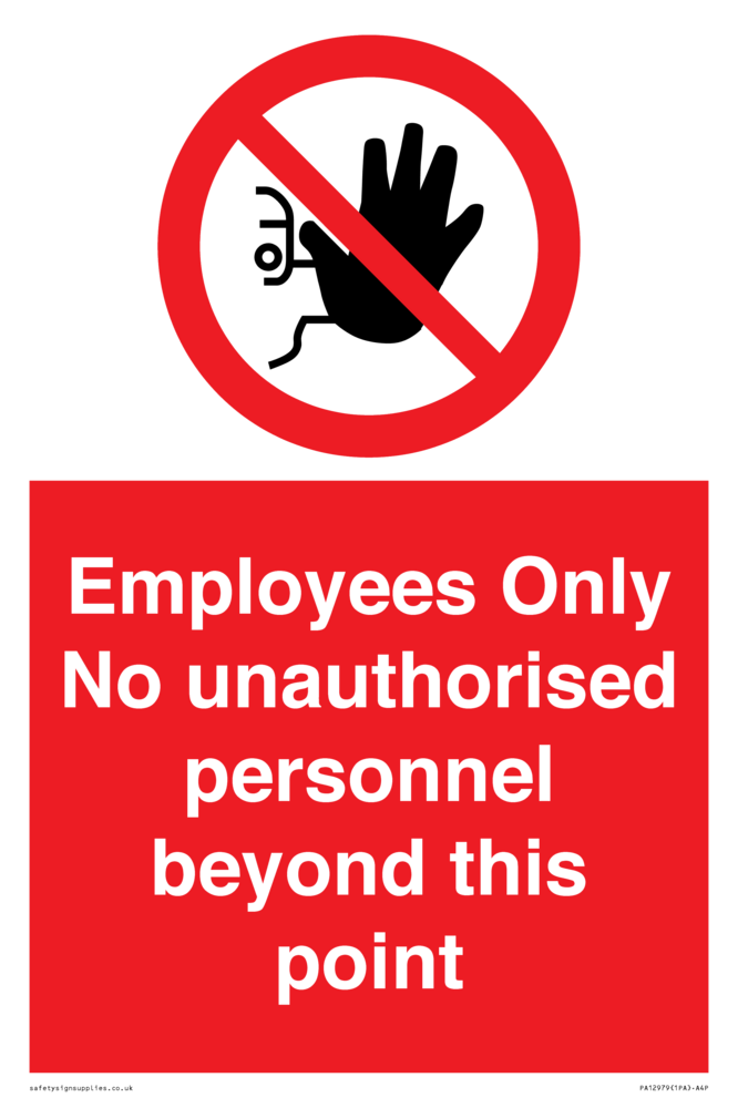 Sign Text: Employees Only No unauthorised personnel beyond this point