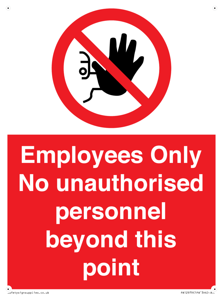 Sign Text: Employees Only No unauthorised personnel beyond this point
