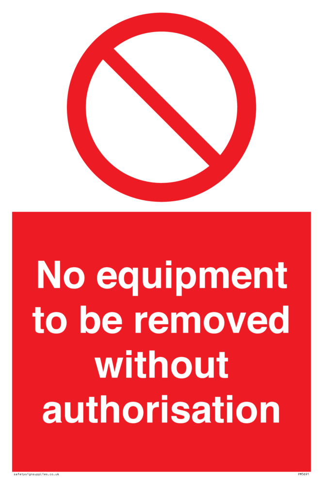 No equipment to be removed without authorisation Prohibition Sign