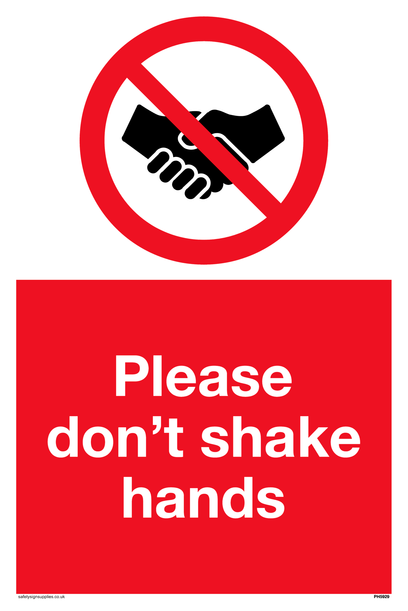 This product contains a no handshakes symbol, black shaking hands in a red crossed through prohibition circle