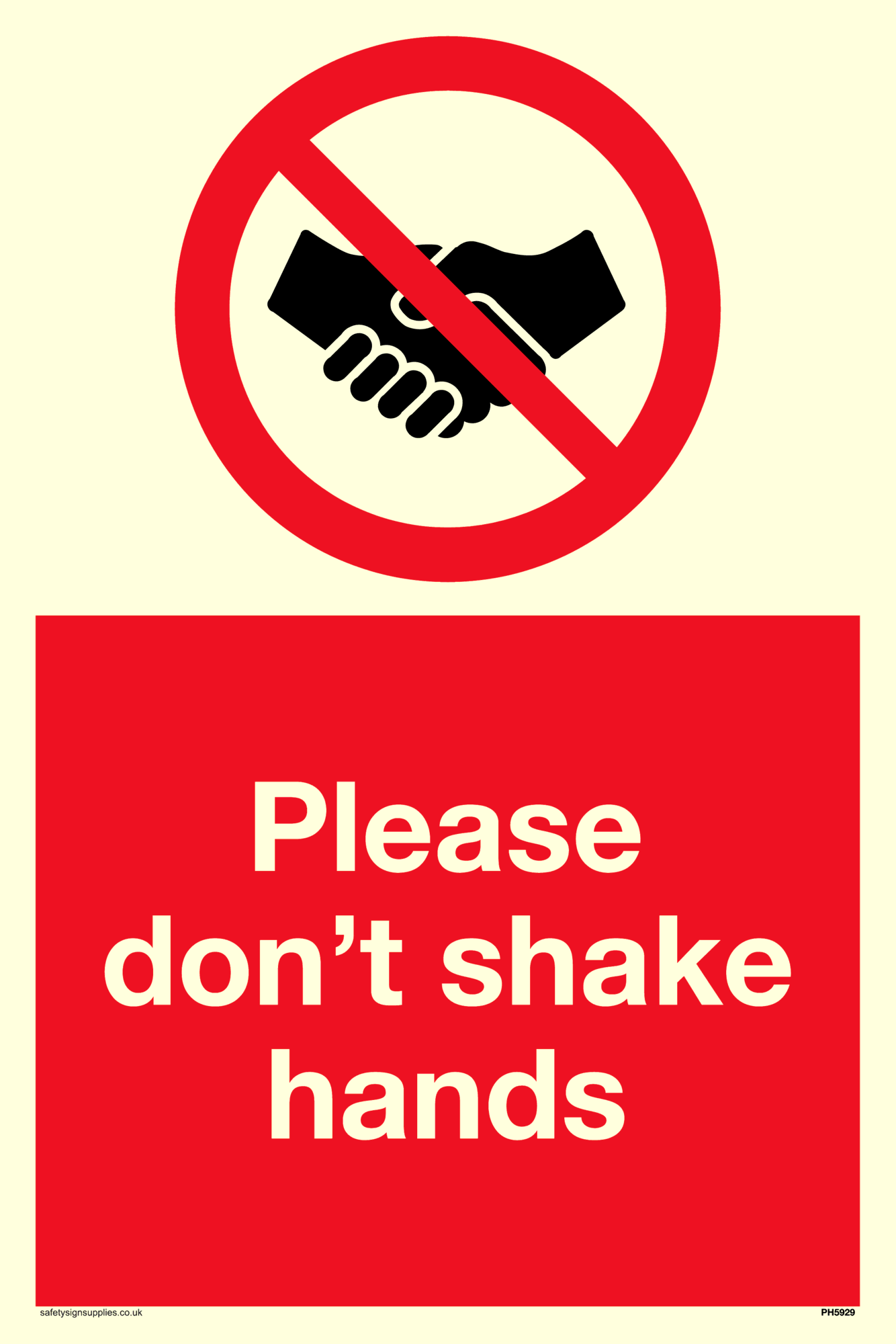 This product contains a no handshakes symbol, black shaking hands in a red crossed through prohibition circle
