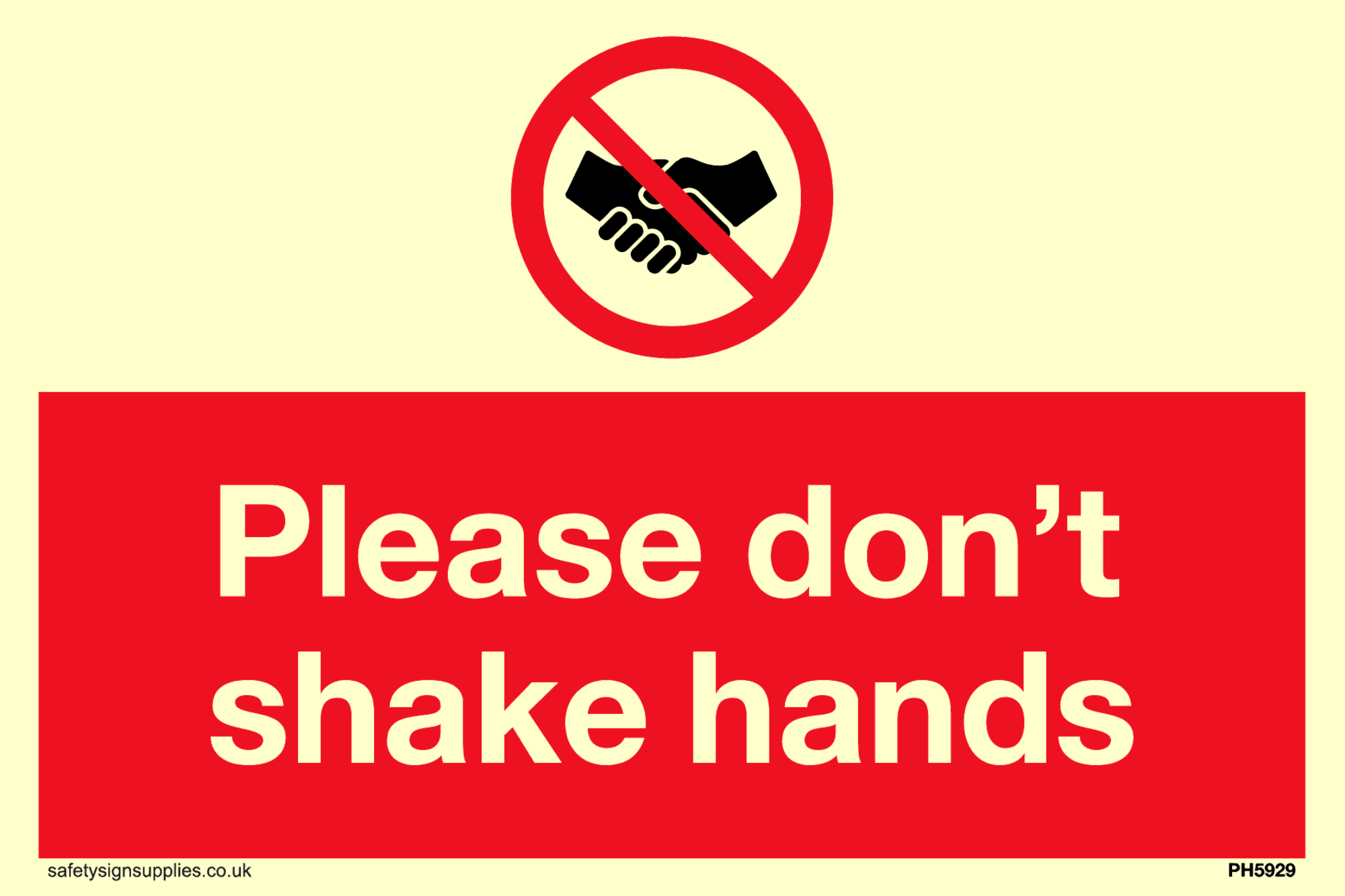 This product contains a no handshakes symbol, black shaking hands in a red crossed through prohibition circle