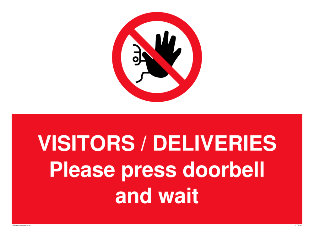 Sign Text: VISITORS / DELIVERIES Please press doorbell and wait