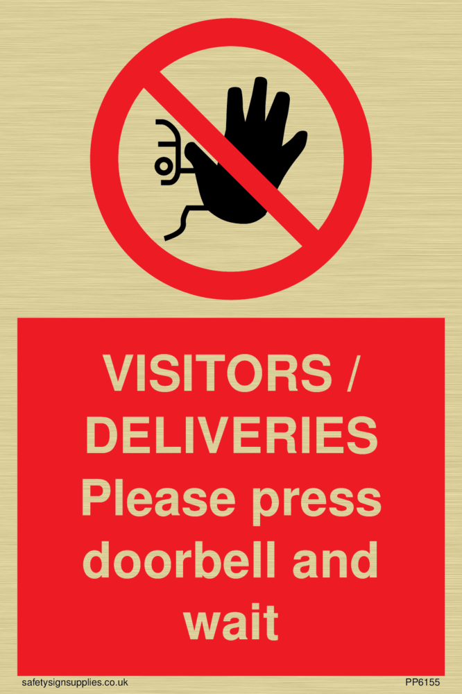 Sign Text: VISITORS / DELIVERIES Please press doorbell and wait