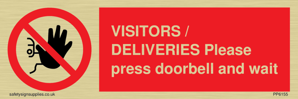 Sign Text: VISITORS / DELIVERIES Please press doorbell and wait