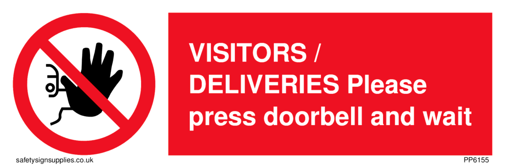 Sign Text: VISITORS / DELIVERIES Please press doorbell and wait