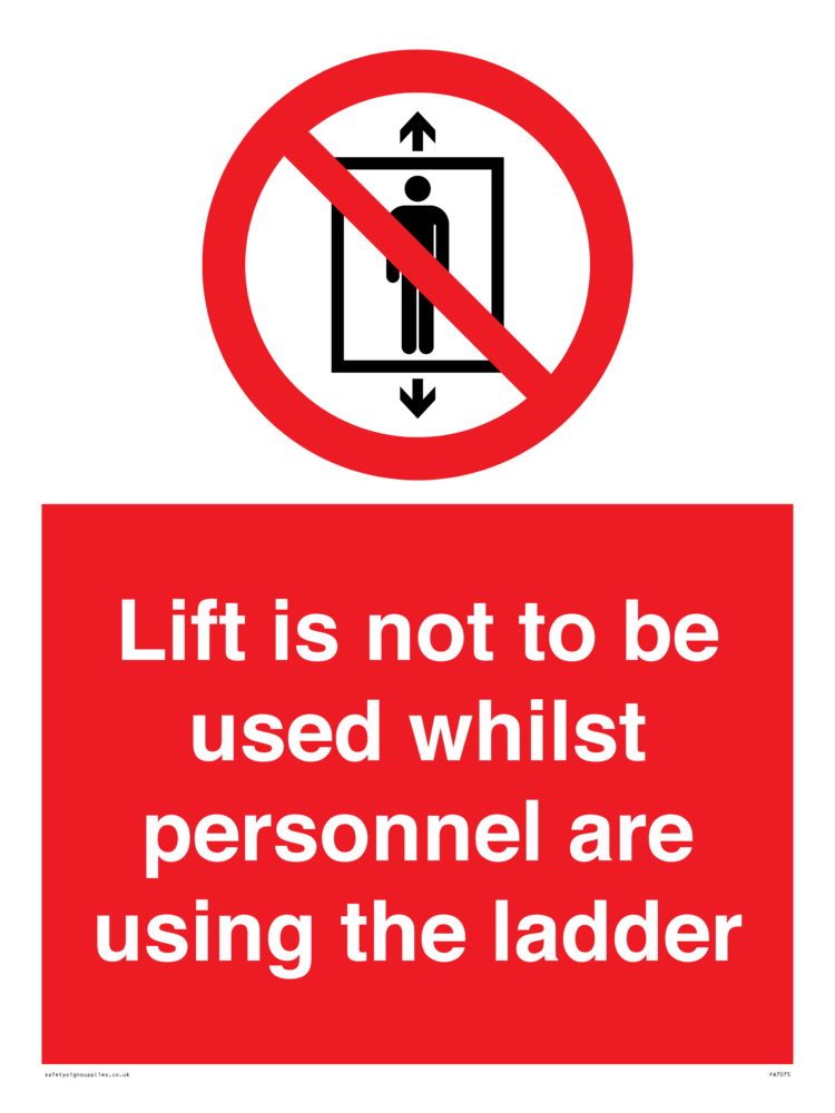 Sign Text: Lift is not to be used whilst personnel are using the ladder