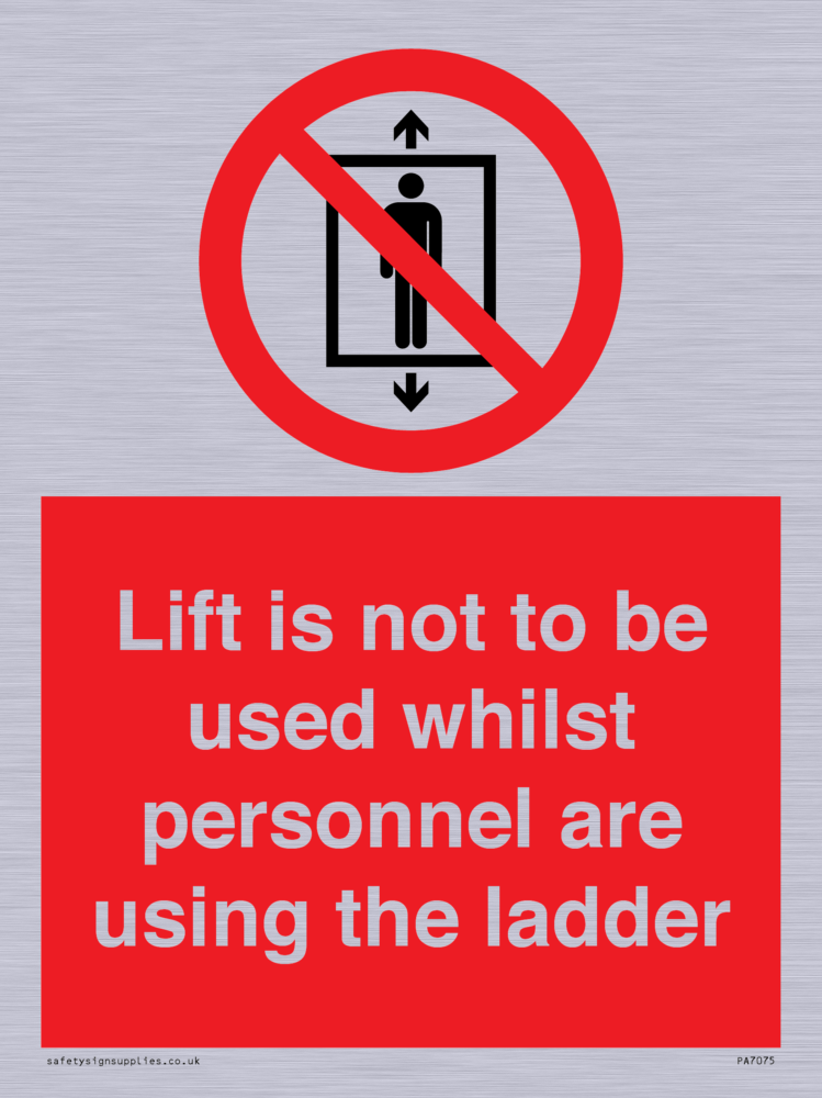 Sign Text: Lift is not to be used whilst personnel are using the ladder