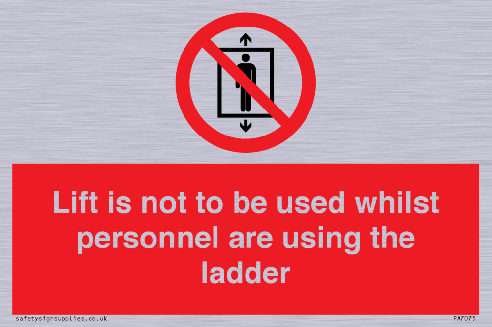 Sign Text: Lift is not to be used whilst personnel are using the ladder