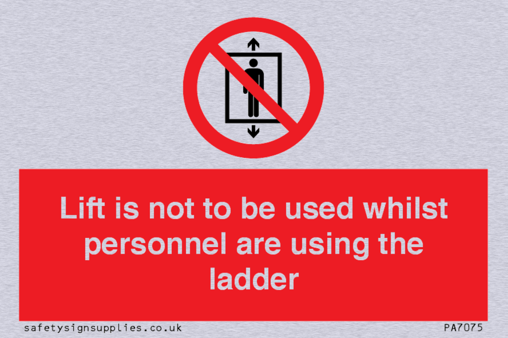Sign Text: Lift is not to be used whilst personnel are using the ladder