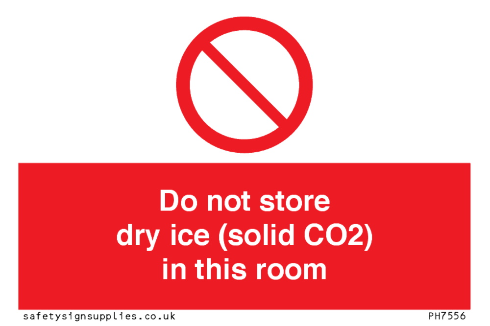 Sign Text: Do not store dry ice (solid CO2) in this room
