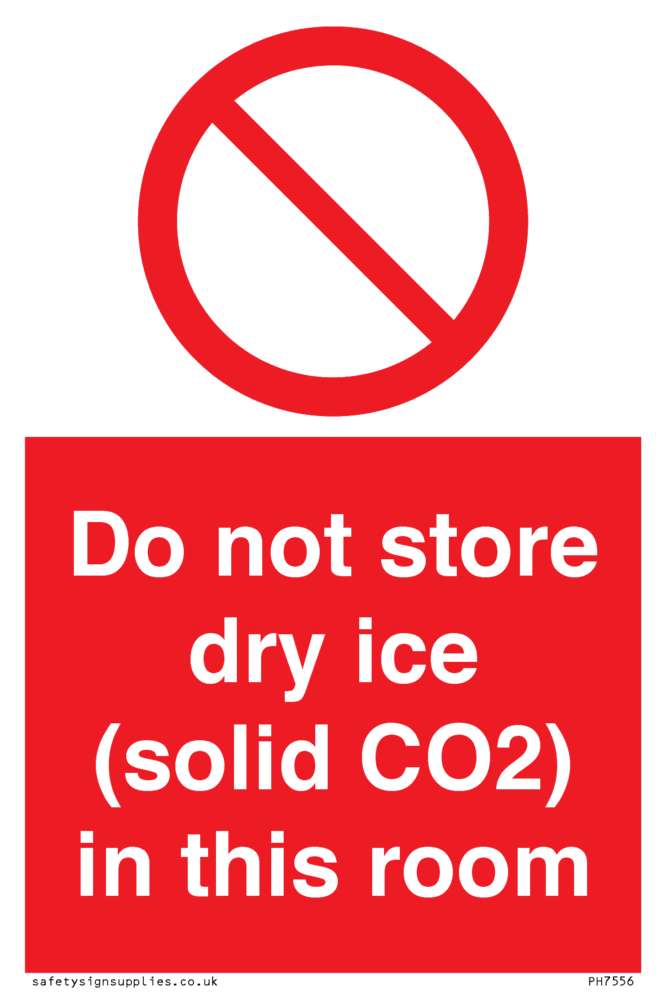 Sign Text: Do not store dry ice (solid CO2) in this room