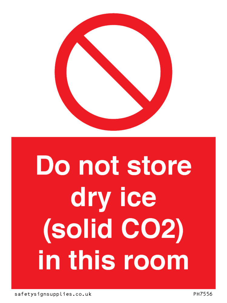 Sign Text: Do not store dry ice (solid CO2) in this room