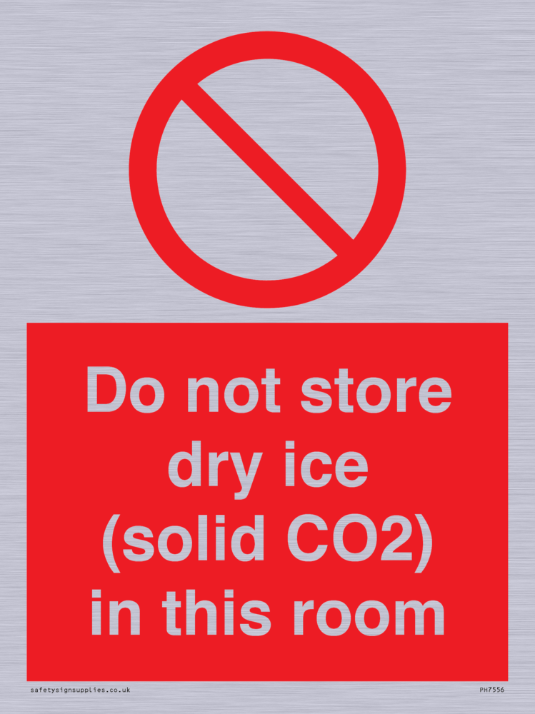 Sign Text: Do not store dry ice (solid CO2) in this room