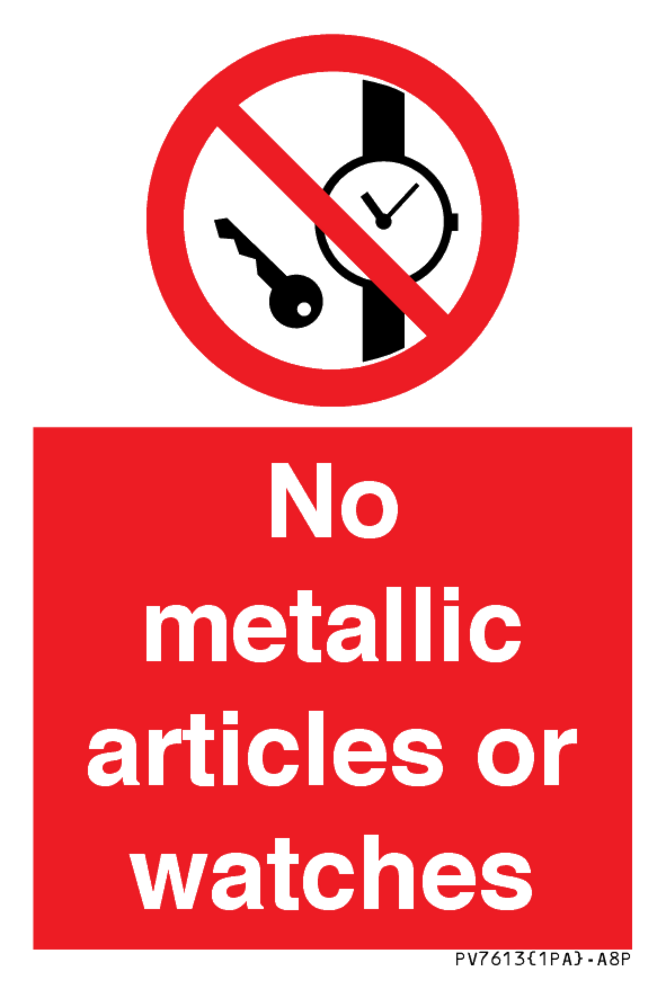 P008 Prohibition: No metallic articles or watches