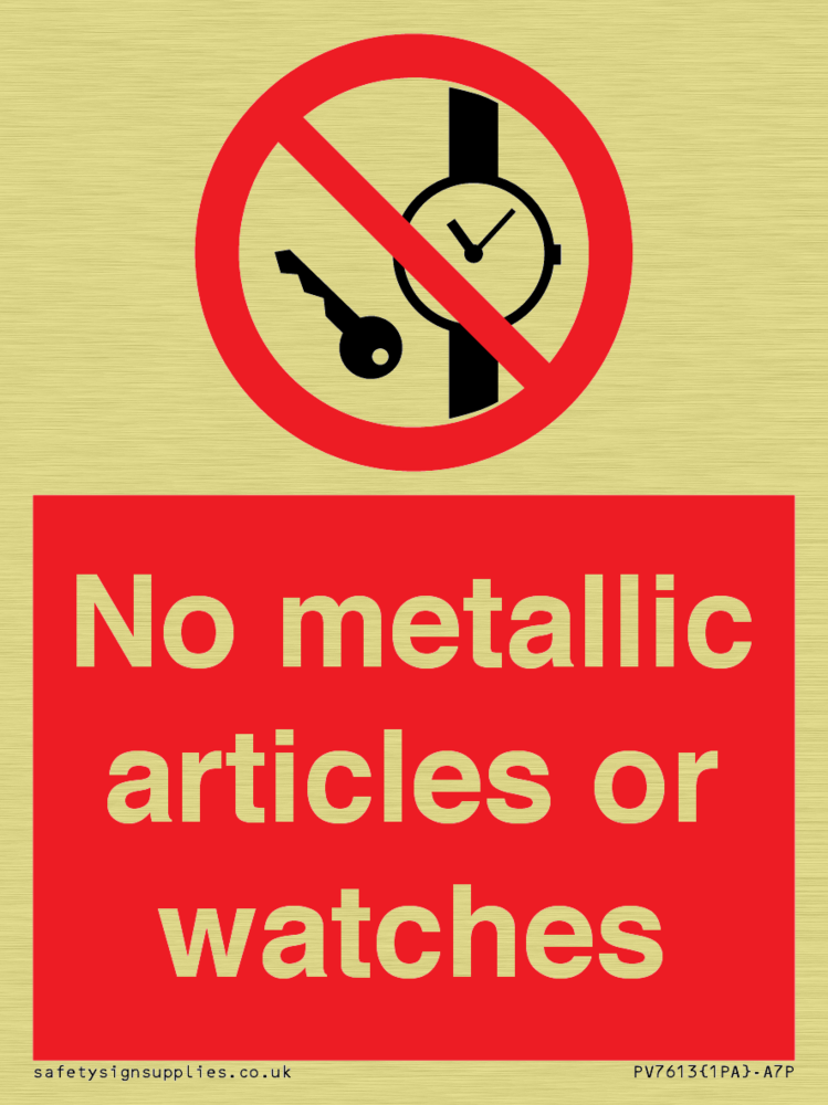 Sign Text: No metallic articles or watches