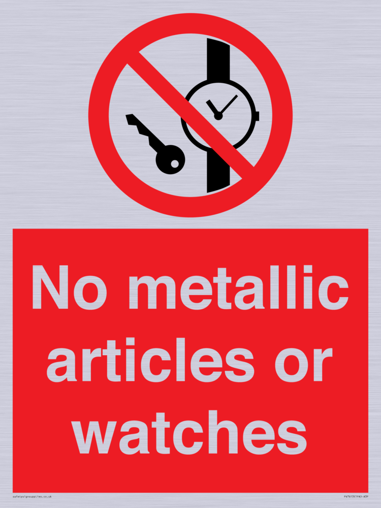 Sign Text: No metallic articles or watches