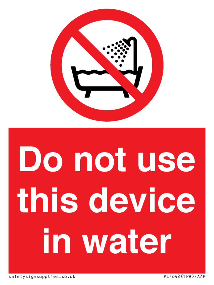 P026 Prohibition: Do not use this device in a bathtub, shower, or water-filled reservoir