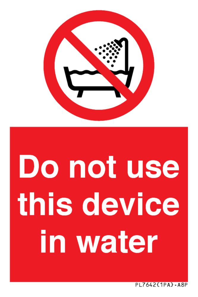 P026 Prohibition: Do not use this device in a bathtub, shower, or water-filled reservoir