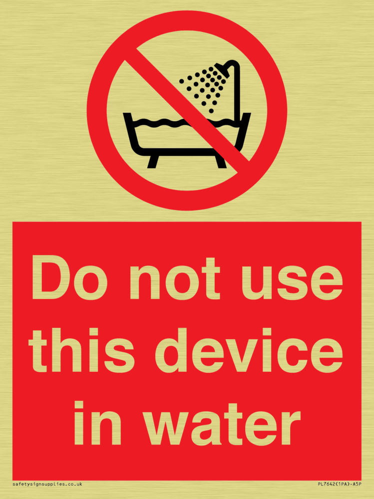 P026 Prohibition: Do not use this device in a bathtub, shower, or water-filled reservoir