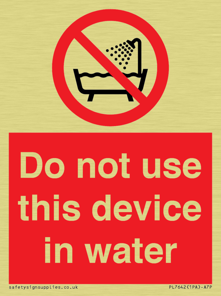 P026 Prohibition: Do not use this device in a bathtub, shower, or water-filled reservoir