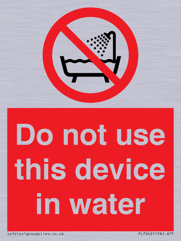 P026 Prohibition: Do not use this device in a bathtub, shower, or water-filled reservoir
