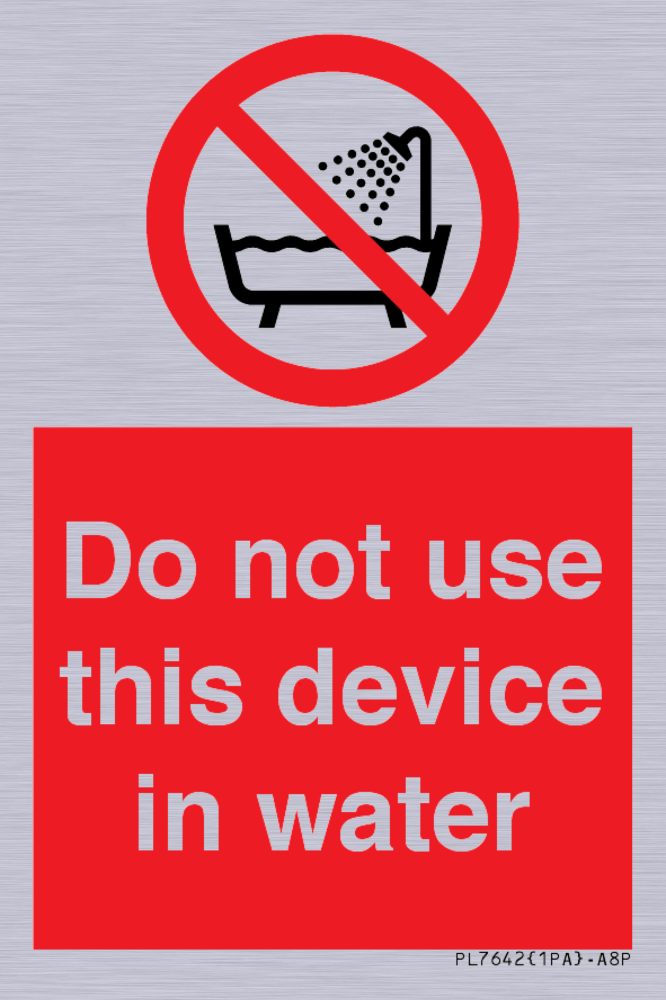 Sign Text: Do not use this device in water