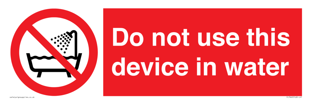 P026 Prohibition: Do not use this device in a bathtub, shower, or water-filled reservoir