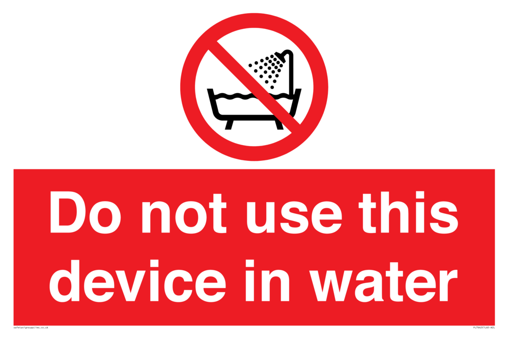 P026 Prohibition: Do not use this device in a bathtub, shower, or water-filled reservoir