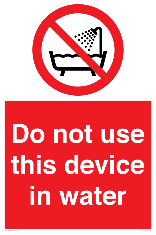 P026 Prohibition: Do not use this device in a bathtub, shower, or water-filled reservoir