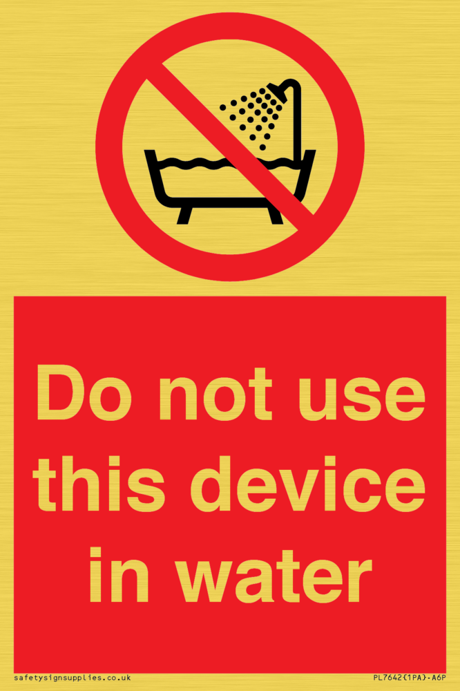 P026 Prohibition: Do not use this device in a bathtub, shower, or water-filled reservoir