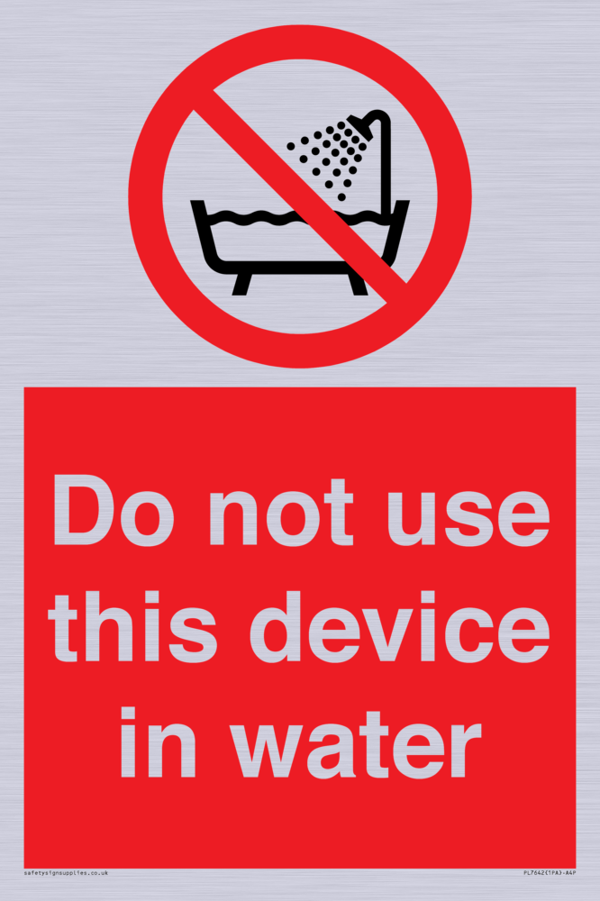 Sign Text: Do not use this device in water
