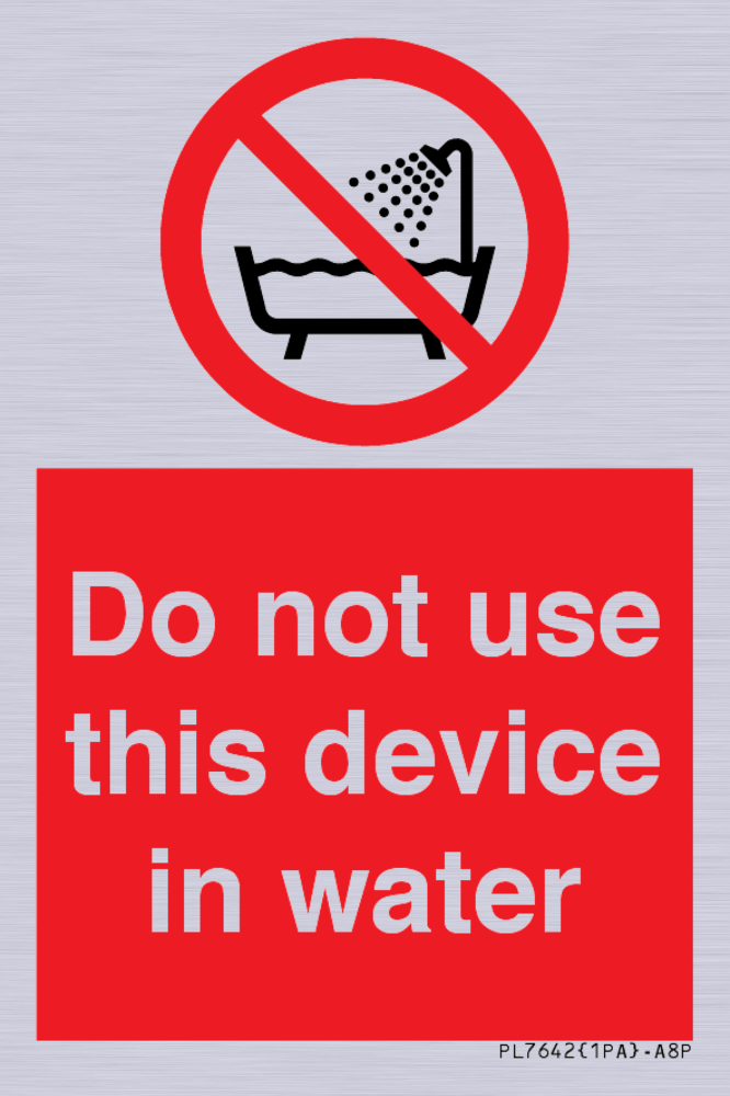 Sign Text: Do not use this device in water
