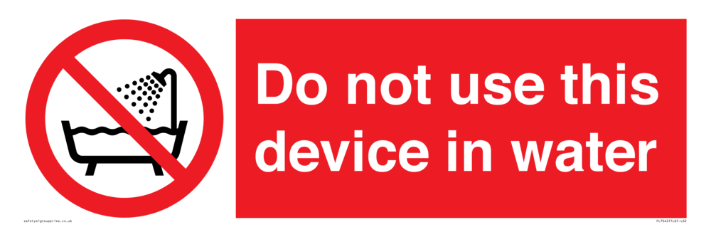 Sign Text: Do not use this device in water