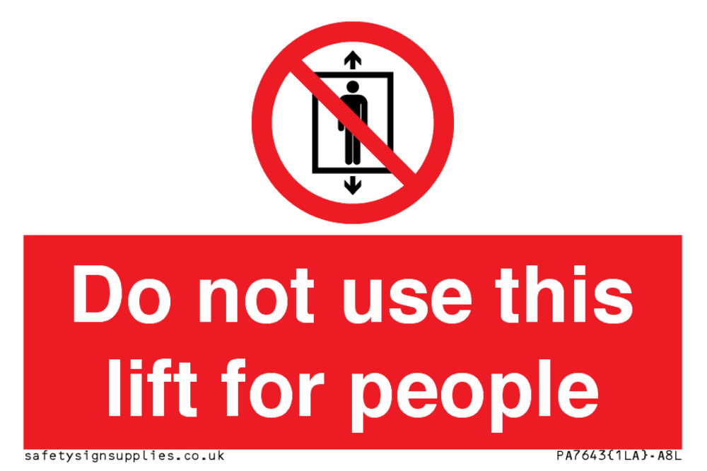 Sign Text: Do not use this lift for people