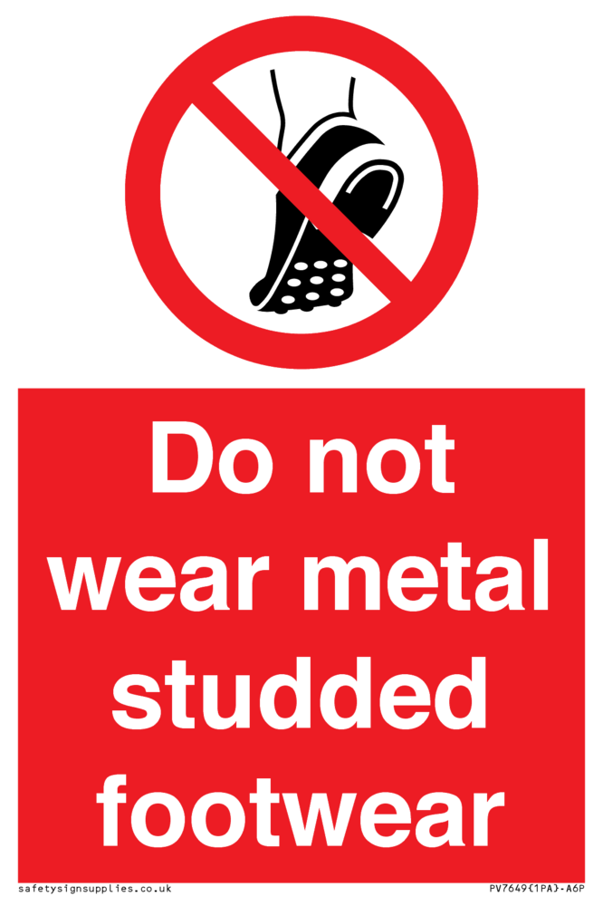 Sign Text: Do not wear metal studded footwear
