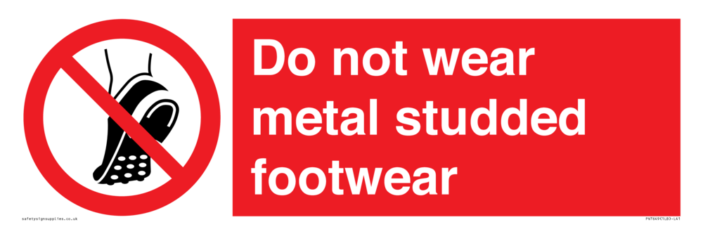 Sign Text: Do not wear metal studded footwear