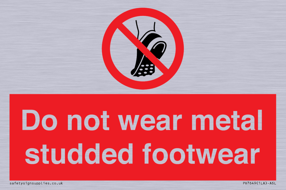 Sign Text: Do not wear metal studded footwear