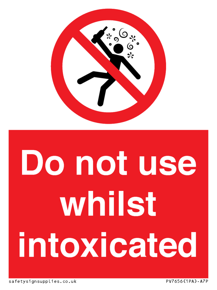 Sign Text: Do not use whilst intoxicated