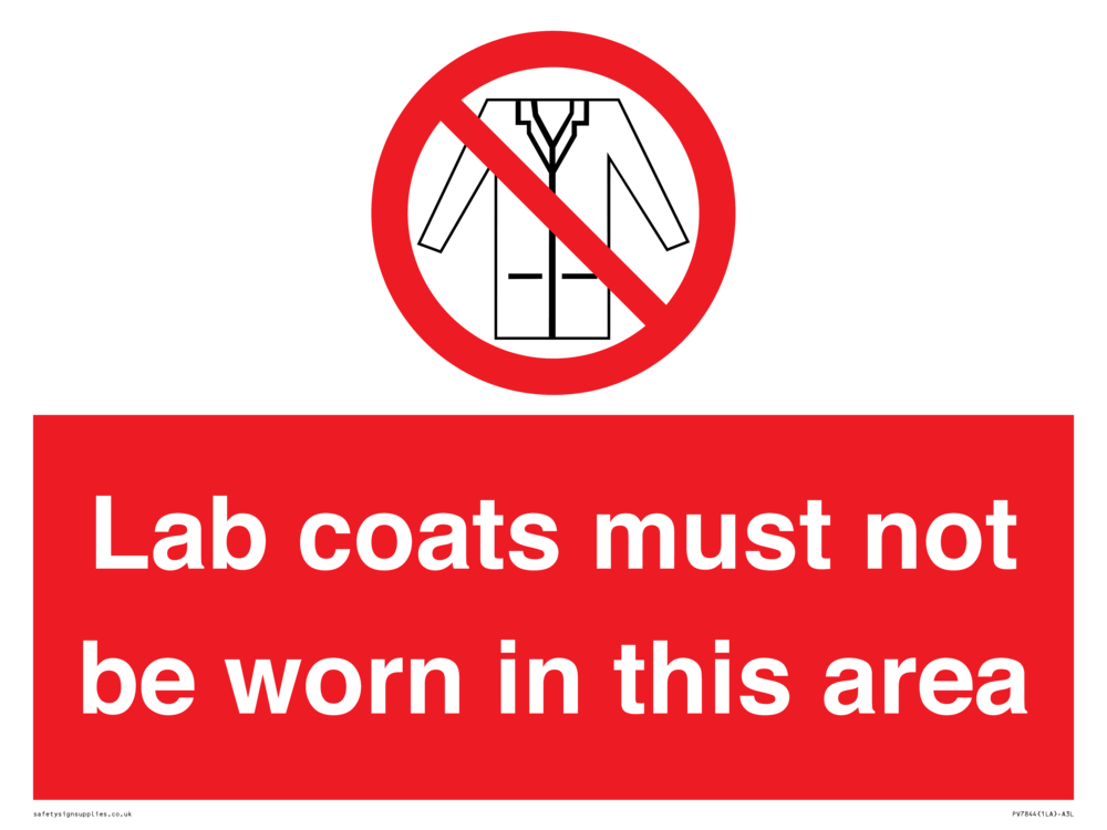 Sign Text: Lab coats must not be worn in this area