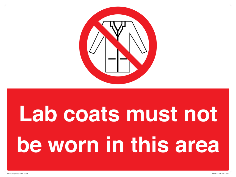 Sign Text: Lab coats must not be worn in this area