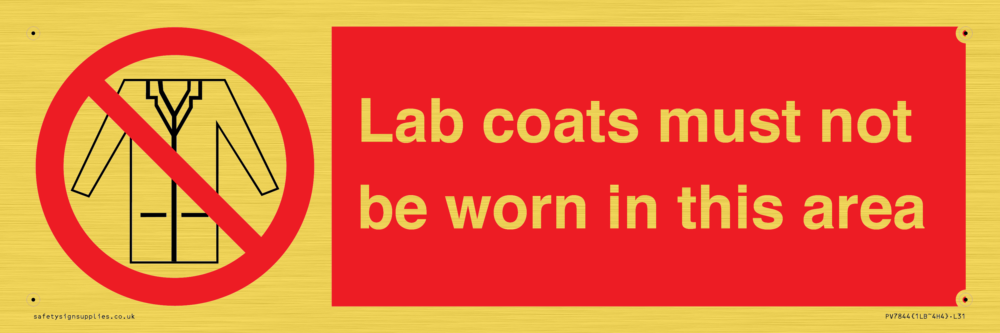 Sign Text: Lab coats must not be worn in this area