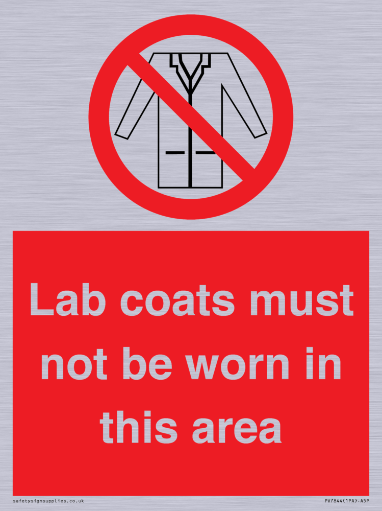 Sign Text: Lab coats must not be worn in this area