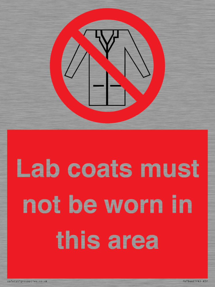 Sign Text: Lab coats must not be worn in this area