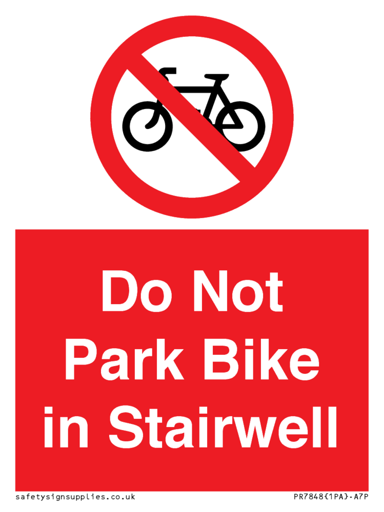 Sign Text: Do Not Park Bike in Stairwell